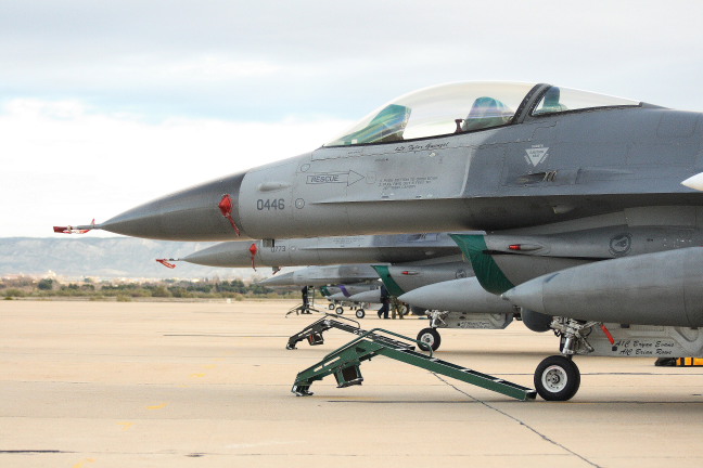Line-up de F-16C Block 40 de la 31st FW en la Plataforma Militar Sur de la BAZ. En primer lugar el 88-0446.